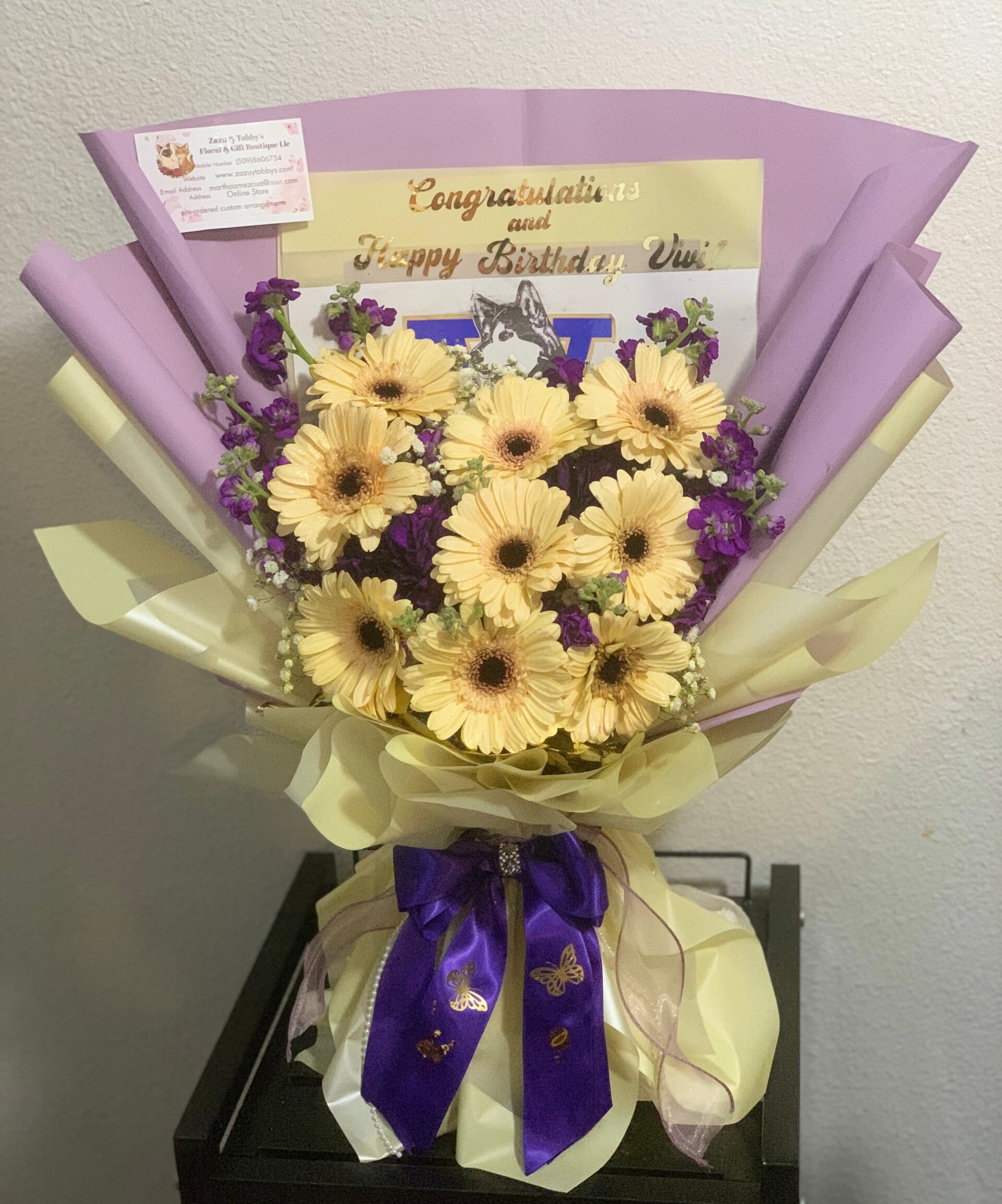 Zazu&tobbys.com did a beautiful job on the bouquet arrangement us, the flowers were arranged just right so that it showed they put a alot of time and heart into making our day special, I would highly recommend them.